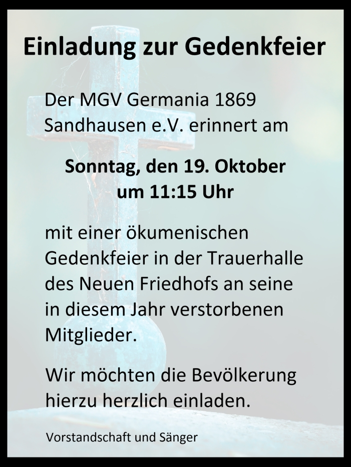 Der MGV Germania Sandhausen 1869 e.V. zählt derzeit 35 aktive Sänger und gehört zu den ältesten Vereinen in der Gemeinde Sandhausen. Die Anzahl der aktiven und passiven Mitglieder liegt derzeit bei ca. 500 Vereinsmitgliedern. Das breite Repertoire reicht von der Klassik, Oper, Operette über deutsche und internationale Volkslieder. Aber auch Messen, Gospels und neue Chorliteratur werden bei uns gesungen. Ausflüge, Konzertreisen und Wandertage gehören zu unseren jährlichen Highlights, die immer sehr gut von unseren Mitgliedern angenommen werden.