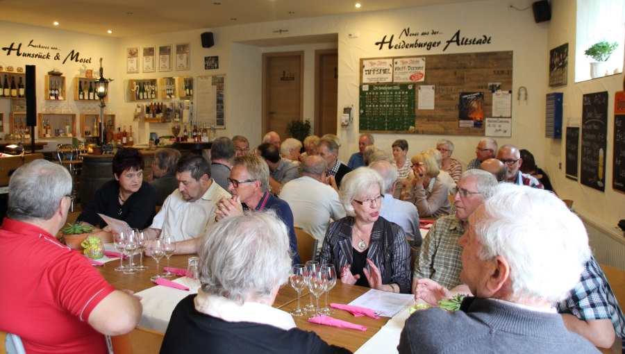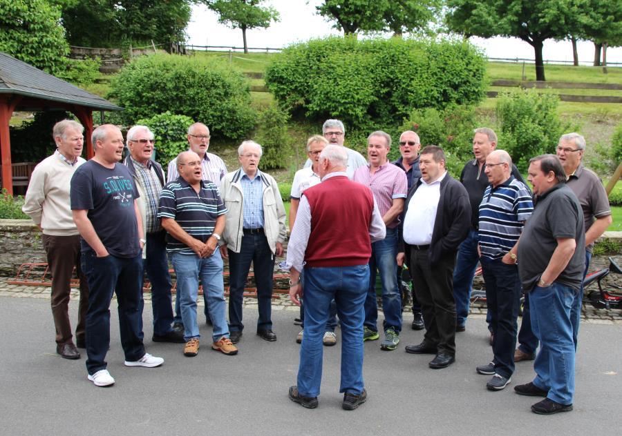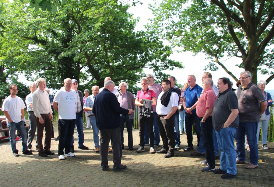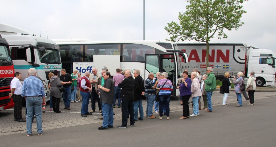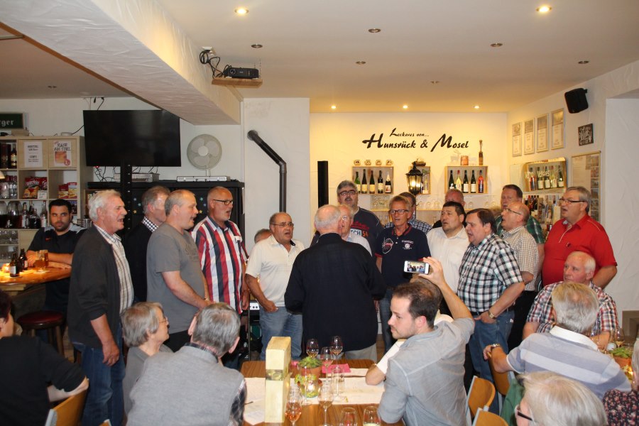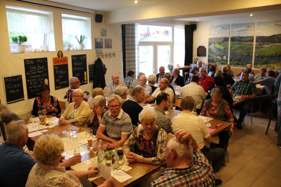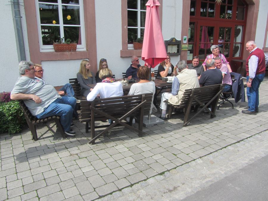 Pünktlich fanden sich die Teilnehmer unserer Moselreise am Freitag, den 03. Juni zur Abfahrt des Reisebusses am vereinbarten Treffpunkt ein. Nachdem das Gepäck verstaut war und alle ihren Platz im Bus eingenommen hatten, konnte die Fahrt beginnen. Wir kamen zügig voran. Unsere Frühstückspause machten wir beim Rasthof „Pfalz“. Markus hatte mal wieder für das leibliche Wohl vorgesorgt und so gab es neben kühlen Getränken auch warmen Fleischkäse und gude Sandheisa Weck. Nachdem sich alle gestärkt hatten, ging die Fahrt weiter über die Hunsrückhöhenstraße nach Idar-Oberstein. Dort wurden wir bereits von unserem Reiseleiter Dieter zu einer Führung in einer Edelsteinschleiferei erwartet. Dabei erfuhren wir viel Wissenswertes rund um die Herkunft und die Bearbeitung der Edelsteine. Im hauseigenen Museum konnten viele Raritäten bewundert werden und natürlich wurde in den Verkaufsräumen auch Edelsteinschmuck angeboten. Da konnten nicht alle widerstehen und so manche(r) verließ steinreich das Gebäude. Zum Abschluss gab es für alle noch einen Abschiedssekt und dann ging die Fahrt weiter mit unserem Reiseleiter Dieter, der uns viele Informationen entlang der Strecke gab. Unser nächster Stopp war auf dem 816 m hohen Erbeskopf. Hier befindet sich eine Anlage der Deutschen Flugsicherung. Leider war der versprochene Fernblick durch das trübe Wetter nicht wie erhofft, aber trotzdem ein lohnender Abstecher. Da bereits wieder das Hungergefühl aufkam, wurde es Zeit, das Bauernhofcafé Hunolsteiner Hof in Morbach-Hunolstein anzusteuern. Hier fand ein jeder aus der reichhaltigen Karte sein Wunschgericht. Der Betrieb wurde 2007 als bestes Bauernhofcafé in Rheinland-Pfalz von der Landwirtschaftskammer RLP mit vier goldenen Tassen ausgezeichnet. Bevor wir das Café verließen, wurden einige Lieder angestimmt. Die anschließende Fahrt zu unserer Unterkunft für die nächsten beiden Tage verlief ohne Zwischenfälle und so kamen wir pünktlich im Moselort Brauneberg an. Im Hotel „Zur Grafschaft“ wurden wir schon erwartet und so konnten die Zimmer bezogen werden. Um 18:30 Uhr trafen sich alle zum Abendessen im Gewölbekeller. In geselliger Runde ließen wir es uns schmecken und genossen selbstverständlich auch den guten Moselwein. An diesem Abend unterhielt uns Andrea mit Livemusik und auch wir ließen wieder unsere Stimmen erklingen. So ging der erste Tag harmonisch zu Ende.