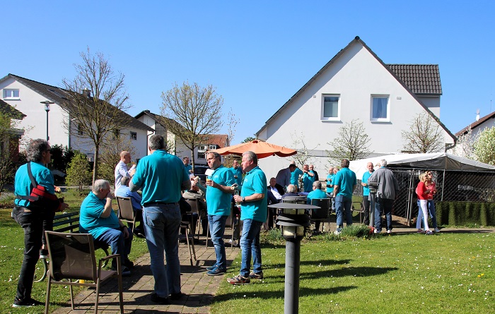 Am 05. April feierte unser ehemaliger Chorleiter Peter Kimling seinen 70. Geburtstag. Wir wollten ihn mit unserem Besuch überraschen und hatten dazu Kontakt mit der Heimleitung und seinem Neffen Michael aufgenommen. Peter ist durch seine Krankheit sehr stark beeinträchtigt und lebt in der Seniorenresidenz „Römergarten“ in Rauenberg. Die Heimleitung war von unserer Idee eines Auftritts sofort begeistert. Michael hat dann alles für unser leibliches Wohl organisiert. So trafen wir in starker Chorstärke zur vereinbarten Zeit in Rauenberg ein. In der Cafeteria nahmen wir Aufstellung und erlebten einen total überraschten Jubilar. Nach unserem ersten Liedvortrag war es Wolfgang, der in seiner kurzen Ansprache die Zeit von Peters Chorleitertätigkeit Revue passieren ließ. Er kam im Jahr 1990 zu uns und hat in den zehn Jahren seiner Dirigententätigkeit erfolgreich gewirkt. Noch heute erzählen die Sänger von damals über unvergessliche Eindrücke bei den Auslandsreisen nach Amerika, Rom und Wien. Oder auch von dem Konzert 1996 mit allen seinen Chören auf der großen Freilichtbühne in Ötigheim. Im Gedächtnis blieben auch viele erfolgreich besuchte Sängerfeste und zwei Vereinsjubiläen. Leider beendete ein Schicksalsschlag im Januar 2000 diese tolle Zusammenarbeit. Wolfgang überbrachte im Namen von Vorstandschaft und Sänger die herzlichsten Glückwünsche und ein Präsent.