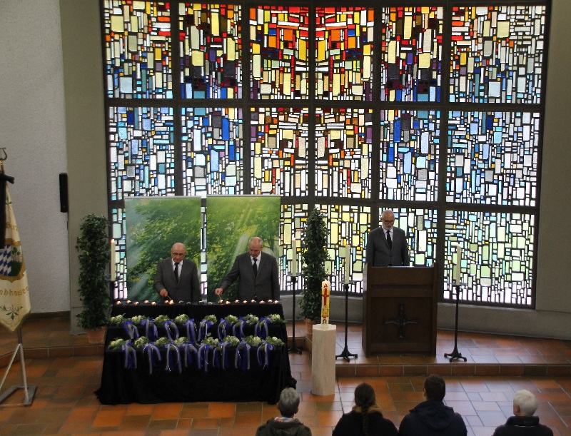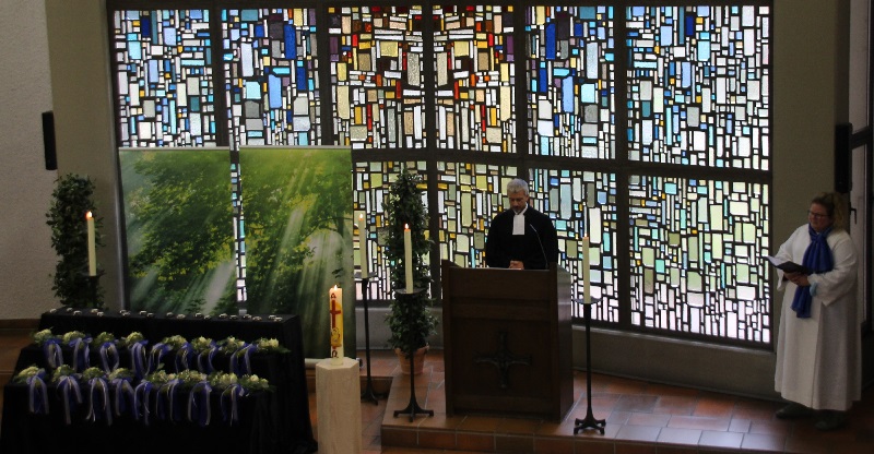 Nach unserem Eingangsstück „Weit, weit weg“ folgten das Votum, die Begrüßung und die liturgische Eröffnung mit dem Tagesgebet durch die beiden Geistlichen. Danach erklang das Lied „Lord, I want to be a Christian“. Es schlossen sich eine Schriftlesung sowie die Ansprache über diesen Lesungstext an. Ein Orgelstück leitete zu unserem Nachruf mit dem Verlesen der Namen unserer verstorbenen Mitglieder über. Für jedes wurde bei der Namensnennung eine Kerze entzündet. Nach weiteren Orgelklängen folgten die Fürbitten und die Überleitung zum „Vater unser“.