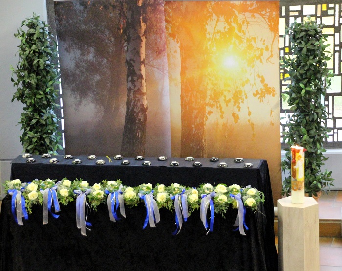 Traditionell findet das Gedenken für unsere in den letzten 12 Monaten verstorbenen Mitglieder am dritten Wochenende im Oktober statt.Am Sonntag, den 20. Oktober hatten wir wieder die Angehörigen unserer verstorbenen Mitglieder sowie die Bevölkerung in die Trauerhalle des Waldfriedhofs zu einer ökumenischen Gedenkfeier eingeladen. In diesem Jahr konnten wir mit Frau Bertram - Milde eine Trauerrednerin gewinnen, welche in Sandhausen schon viele Trauerfeiern gestaltet hatte. Wie in der Vergangenheit wirkte auch wieder der „Ev. Posaunenchor“ unter der Leitung von Stephan Siebig mit. Damit beim gemeinsamen Lied alle Anwesenden die Möglichkeit zum Mitsingen hatten, wurde ein Liedtextblatt ausgegeben.