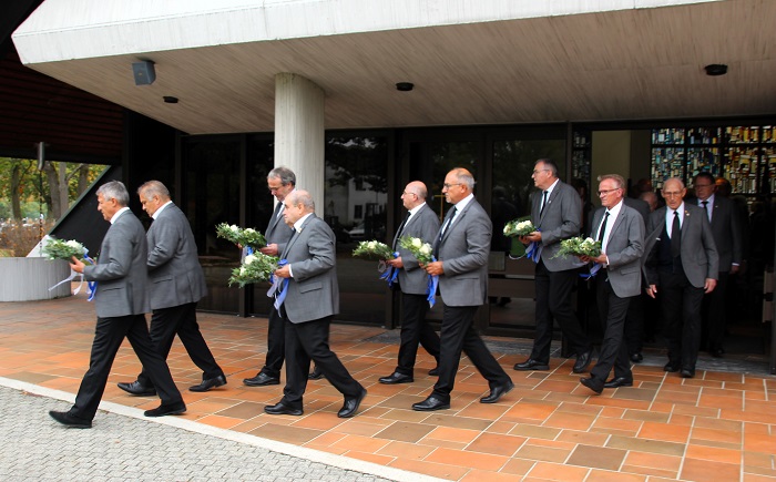 Nach der Verabschiedung und Segenswünschen zogen die Sänger aus der Trauerhalle aus. Dabei nahmen sie die vorbereiteten Blumengebinde auf und legten sie als letzten Gruß an den Gräbern der Verstorbenen nieder.