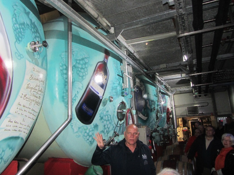 Auch hier war Edwin in seinem Element und erklärte uns die einzelnen Herstellungsschritte. Die vielen Fragen unserer mitgereisten Weinkenner beantwortete er kenntnisreich. Selbstverständlich stand am Ende der Führung vor der Kulisse prächtig verzierter Holzfässer eine Verkostung des edlen Rebensaftes.