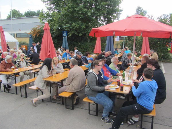 Der Sonntag begann zunächst mit Sonnenschein. Und obwohl sich der Himmel im Tagesverlauf mit vielen dunklen Wolken schmückte, blieb es erfreulicherweise den ganzen Tag über trocken. So fanden wieder viele Gäste den Weg auf den Festplatz und die Plätze beim Hopfä- Zopfä waren gut besetzt. Aber auch hungrige und durstige Besucher hieß es zufrieden zu stellen. Unsere Helfer erledigten dies zu aller Zufriedenheit. Bis in den frühen Abend waren die Plätze gut besetzt. Wir möchten uns an dieser Stelle bei allen unseren Gästen für ihr Kommen herzlich bedanken. Ein Dank geht ebenso an alle Helferinnen und Helfer vor, während und nach dem Fest sowie an den AGV für die Überlassung des Zeltes. Für die gute Zusammenarbeit geht an die Gemeinde Sandhausen ein herzlicher Dank.