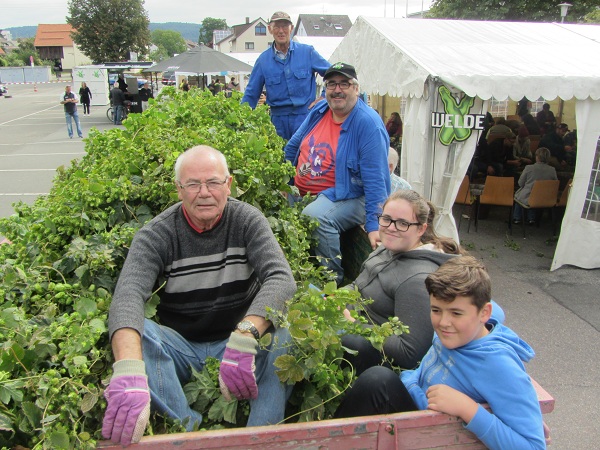 Am vergangenen Wochenende war es wieder soweit: Wir feierten unser Hopfenfest und es wurde nach alter Tradition die Hopfenernte durchgeführt. Die Gemeinde ließ auf dem Festplatz ein Zelt für die Hopfezopfa aufstellen. In diesem Jahr hatten wir zur Bewirtung unserer Gäste ein Versorgungszelt und einen Bierwagen vor Ort. Auf dem Platz waren Tische und Bänke aufgebaut und auch an Sonnenschirme hatten wir gedacht. Heuer wurden diese aber leider mehr als Regenschirme gebraucht. Waren es am vergangenen Wochenende noch tropische Temperaturen, hielt der Herbst leider überpünktlich Einzug, sodass am Festwochenende schon warme Kleidung angesagt war.