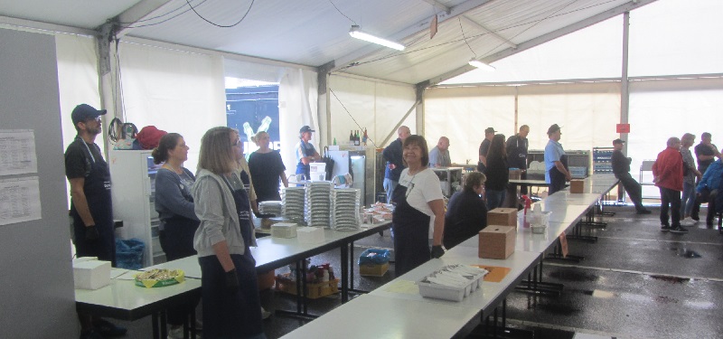 Nicht nur im Festzelt war die Stimmung gut, auch die Erntehelfer waren in geselliger Runde gut bei der Arbeit. Unsere Helfer hinter der Theke konnten sich über Mangel an Beschäftigung nicht beklagen. Neben zünftigen Festzeltspeisen hatten wir auch unsere legendäre „ORIGINAL Sandhaisa Hausmacher“ im Angebot. Dieses wurde mit einer großen Auswahl an Kuchen sowie Kaffee abgerundet. Gegen den Durst gab es neben Welde-Bieren und Weinen auch alkoholfreie Getränke.