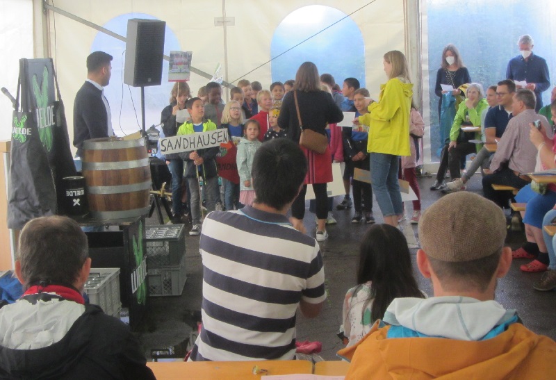Bis zur offiziellen Eröffnung am Samstag war das Zelt gut gefüllt und alle lauschten den Worten unseres BM Hakan Günes, der sich sehr erfreut zeigte, dass endlich wieder diese alte Tradition der Hopfenernte mit einem zünftigen Fest gefeiert werden konnte. Als Vertreter der Welde-Brauerei sprach Braumeister Stephan Dück Grußworte und bestätigte dem Hopfen eine gute Qualität. Der Chor der Grundschule umrahmte die Zeremonie mit den „Sandhäusa Lied“. Dann warteten alle gespannt auf den Fassbieranstich, schließlich war es für unseren Bürgermeister die Premiere. Alle die einen „feuchten“ Anstich erwartet hatten, wurden enttäuscht. Souverän meisterte das Ortsoberhaupt diese Aufgabe und somit konnte das Freibier fließen.