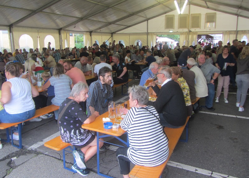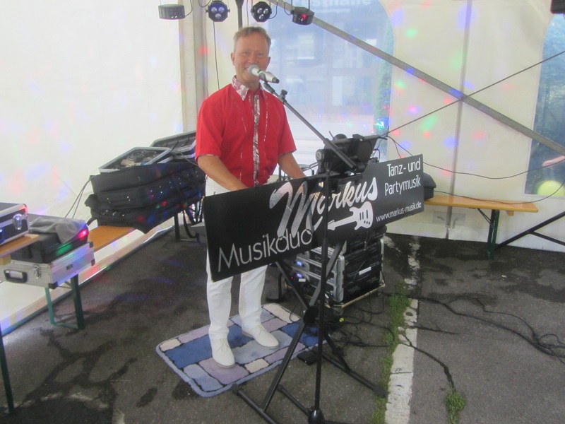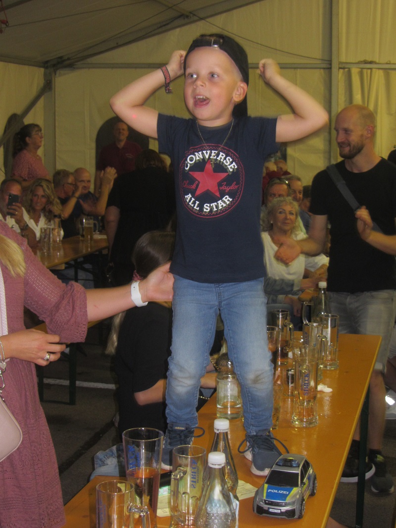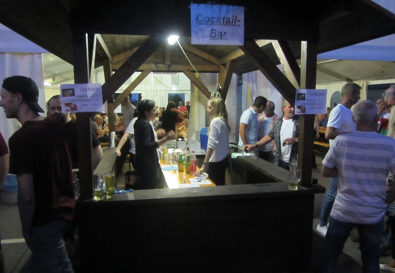 Superpünktlich ab 18:00 Uhr war unser Musiker „Markus-Musik“ einsatzbereit. Er verstand es wieder ausgezeichnet, eine super Stimmung im Zelt zu erzeugen. Liedwünsche wurden gerne von ihm erfüllt und auch die Tanzwilligen wagten sich auf das Parkett. Die kleinen Nachwuchspartygänger tanzten derweil auf dem Tisch und waren obendrein noch äußerst textsicher bei den neusten Partyhits. Mittlerweile war auch vor dem Zelt der Festplatz mit Gästen gefüllt und an der Cocktailbar wurde das Angebot an Longdrinks genossen. So wurde bis spät in die Nacht ausgiebig gefeiert.