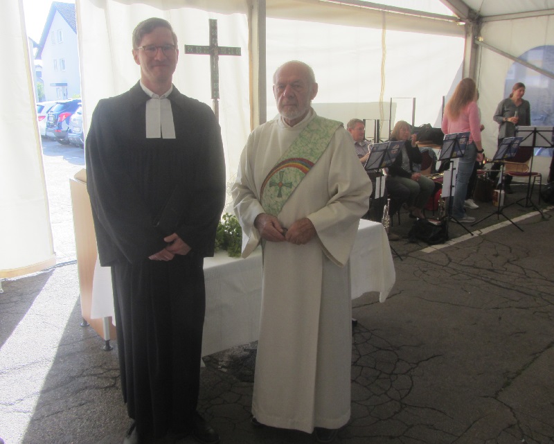 Am Sonntagmorgen waren die ersten Helfer bereits ab 07:00 Uhr im Einsatz. Das Zelt musste für den ökumenischen Gottesdienst hergerichtet werden. Die kirchliche Feier wurde von Pfarrer Dr. Mathias Thurner und Diakon Peter Härich geleitet. Der „Ev. Posaunenchor“ unter der Leitung von Michael Häcker und der MGV Germania (unterstützt von den Sangesfreunden aus Plankstadt) unter dem Dirigat von Walter Muth wirkten ebenfalls mit. Der Gottesdienst endete mit der Segnung der Hopfen.