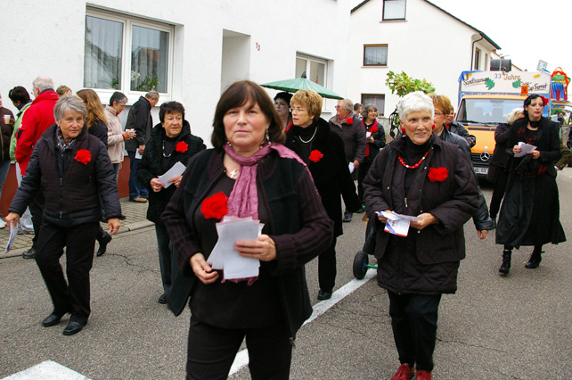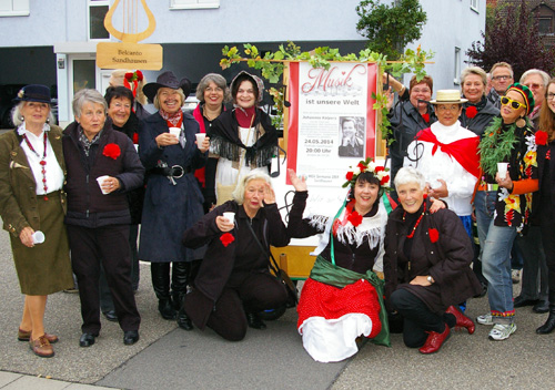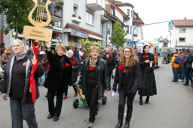 Unsere Belcanto-Frauen machten unser kommendes Konzert zum Thema: „Musik ist unsere Welt“. In Trachten der Länder, in deren Landessprache wir Lieder vortragen oder über die wir singen werden, verschönerten sie das Umzugsbild ganz ungemein!