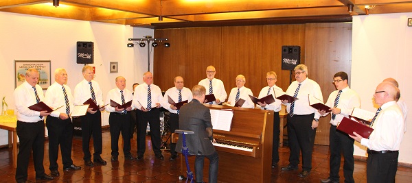 Ein weiterer Programmpunkt folgte mit dem Auftritt einer kleinen Formation. Unser zweiter Vorstand Wolfgang Roedel betonte in seiner Vorstellung, dass diese an das 1959 gegründete Doppelquartett erinnern sollte. Er stellte kurz die Liedvorträge vor. Beim letzten Lied „Handwerkers Abendgebet“ übernahm Markus Kolb den Solopart. Der Auftritt wurde mit viel Applaus belohnt.