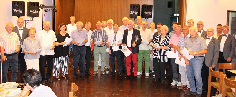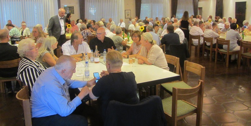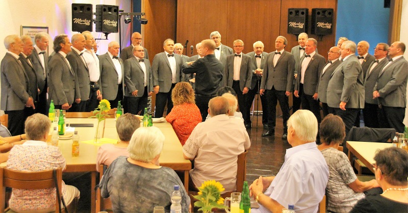 Am Samstag, den 09. Juli war es wieder soweit: Der MGV „Germania“ hatte alle seine Mitglieder zum Liederabend in das Festhallenrestaurant eingeladen. Diese Veranstaltung bildete auch den würdigen Rahmen für die Ehrungen unserer verdienten aktiven und passiven Mitglieder. Nach der pandemiebedingten Pause im letzten Jahr war die Zahl der zu Ehrenden besonders groß. Neben vier Aktiven waren es auch 55 Passive, die für eine Ehrung eine besondere Einladung erhalten hatten. Erfreulicherweise war der Zuspruch sehr groß, sodass wir noch zusätzliche Tische aufstellen mussten. Für die gute Stimmung sorgte wieder unser bewährter Hausmusiker „Markus Musik“.
