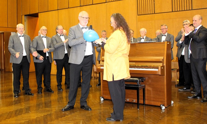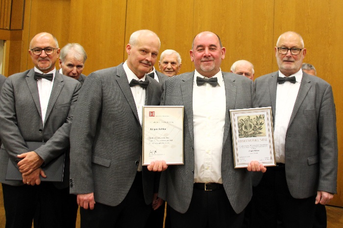 Mit unserem zweiten Chorvortrag „Lord, I Want to Be a Christian“ leiteten wir zu den Ehrungen der Sänger über. In diesem Jahr konnten sich zwei Sänger über eine Auszeichnung freuen: Timo Machmeier für 25 Jahre und Jürgen Köhler für 40 Jahre Singen im Chor.