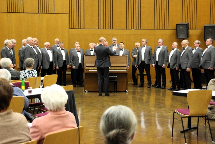 Zum Jahresbeginn starteten wir traditionsgemäß mit unserem Liederabend. Erfreulicherweise konnten wir noch auf die Festhalle zugreifen, da sich der Baubeginn etwas verschoben hatte. Alle unsere Mitglieder waren für Samstag, den 18. Januar zu dieser Veranstaltung eingeladen, bei der auch die Ehrungen unserer verdienten Sänger und passiven Mitglieder stattfanden. Pünktlich um 17:00 Uhr eröffnete der Chor trotz einiger krankheitsbedingter Ausfälle stimmgewaltig unter dem Dirigat unseres Chorleiters Walter Muth mit dem Lied „Handwerkers Abendgebet“ (Solist Markus) den Abend. Danach begrüßte unser Vorstand Markus Kolb alle Anwesenden. Ein besonderer Gruß galt unseren Ehrenmitgliedern und unserem Bürgermeister Hakan Günes. Markus informierte über den Ablauf des Abends, bei dem es weniger um Reden als um Geselligkeit und gute Unterhaltung gehen sollte. Für diese Unterhaltung hatten wir dieses Mal „DJ Frank“ verpflichtet. Auch ihm galt ein herzliches Willkommen.