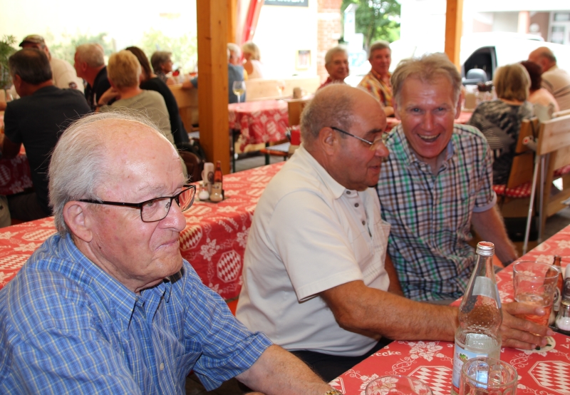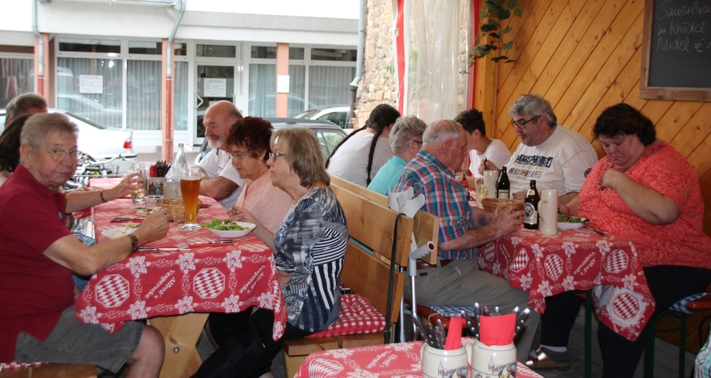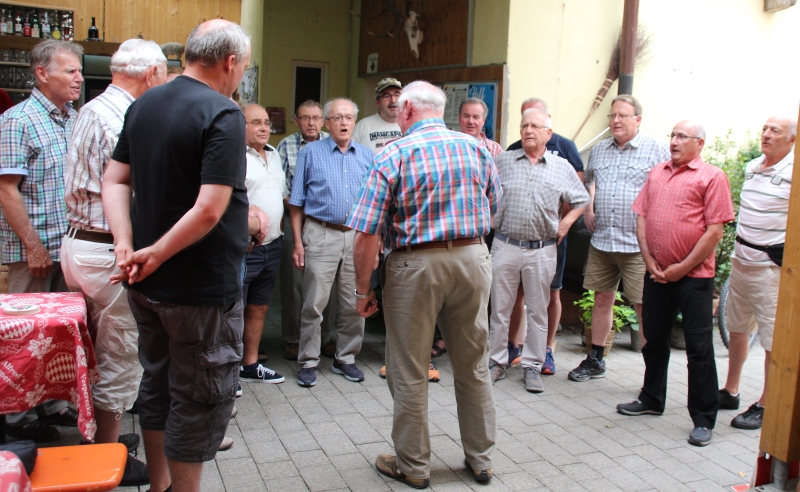 In „Stathers“ Gaststätte wurden wir bereits erwartet und es gab ein Hallo mit den schon anwesenden Mitgliedern, welche direkt zum Ziel gekommen waren. Die Bedienung war sehr aufmerksam und so bekam jeder ohne Wartezeit sein bestelltes Getränk. Danach wurde das vorbestellte Essen ebenso zügig wie schmackhaft serviert. So gut gestärkt und nach einem „Verdauerle“ aufs Haus machten wir das, welches wir am Liebsten machen: Wir sangen.